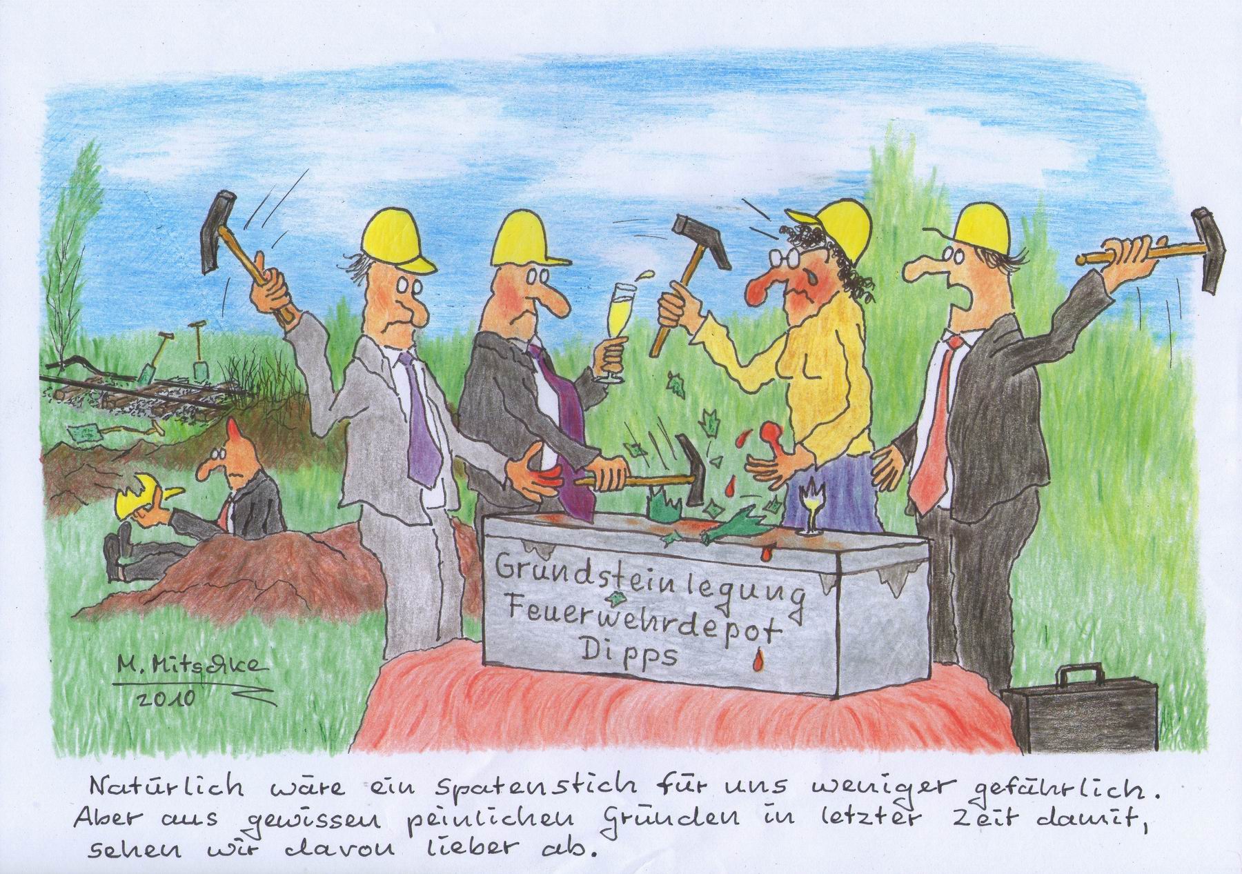 Grundsteinlegung (Karikatur: Mirco Mitschke, September 2010)